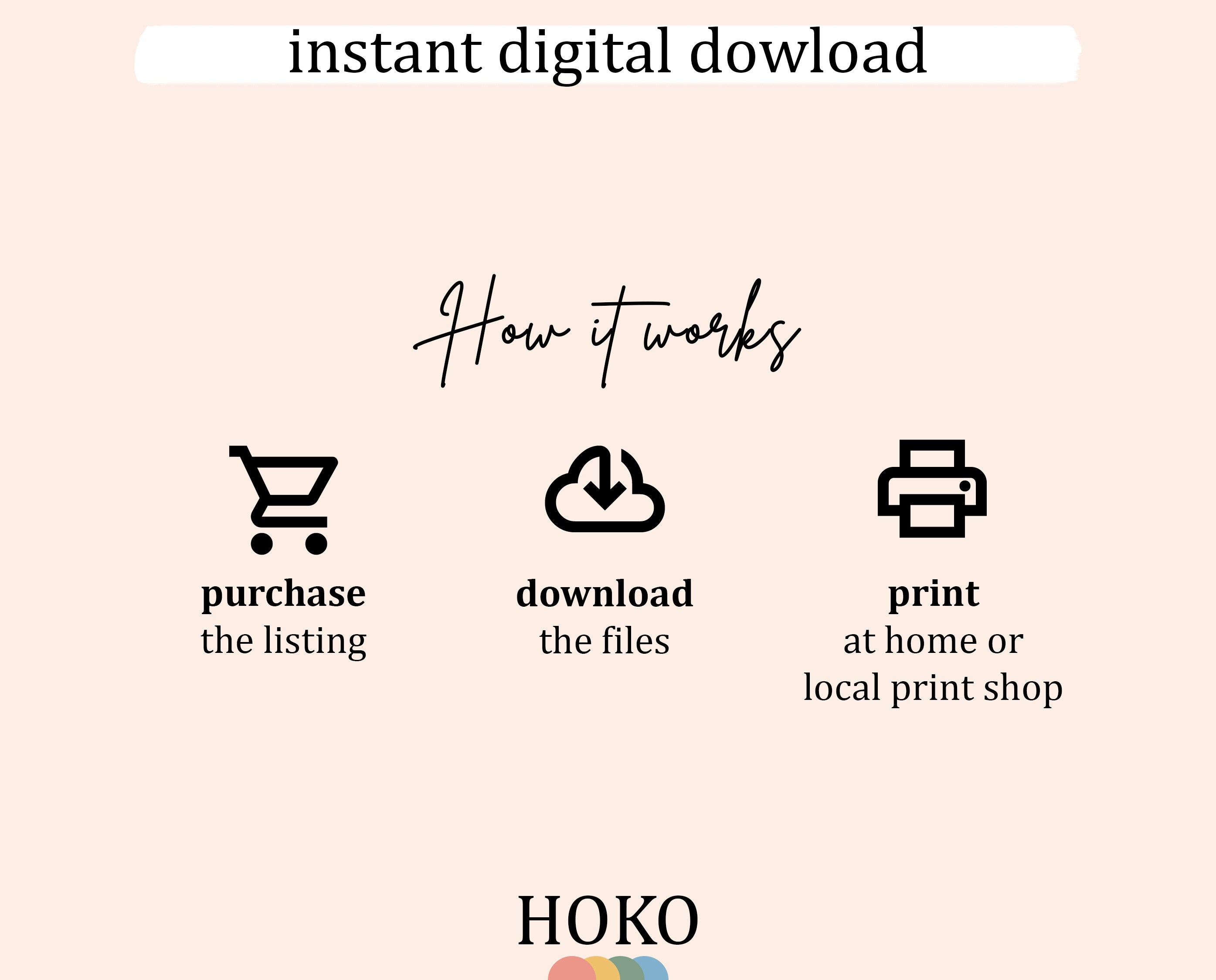 You can print your digital products at home or at a local print shop. For best results, we recommend using high-quality paper or cardstock. If you have any specific questions about printing, feel free to message us on Etsy for guidance. Thank you!